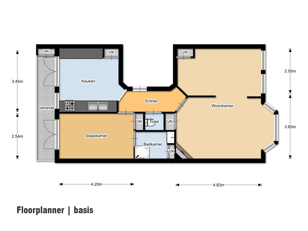 Wordt de plattegrond in de gewenste oriƫntatie aangeleverd?