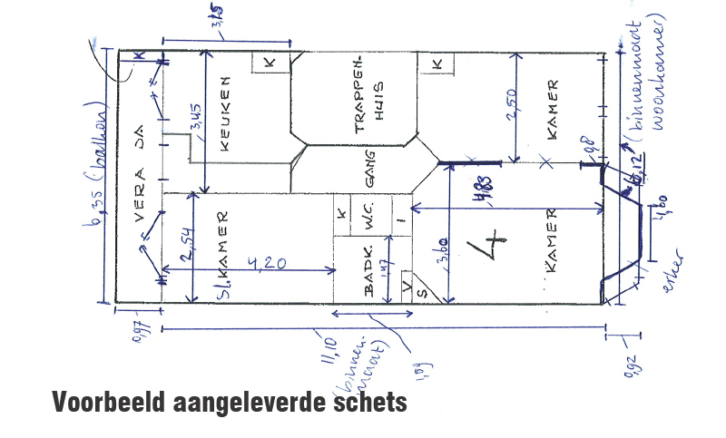 Graag alleen plattegronden aanleveren. Foto's, doorsneden en gevels worden niet meegenomen.